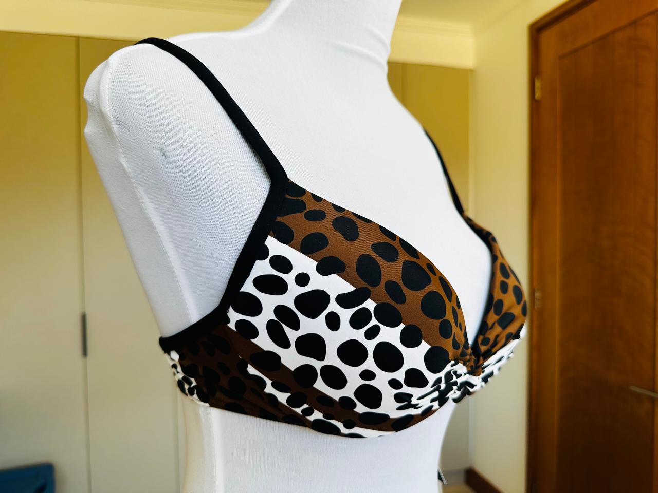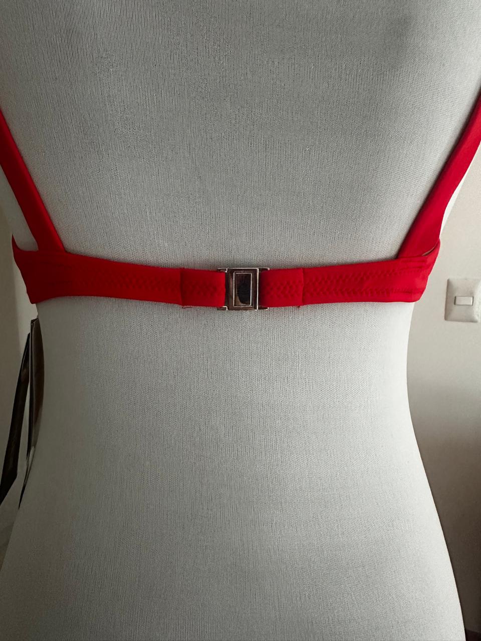 Top Español, tela con tratamiento especial para resistir al cloro y ofrecer protección UV+50. Su interior está completamente forrado, garantizando comodidad y durabilidad.