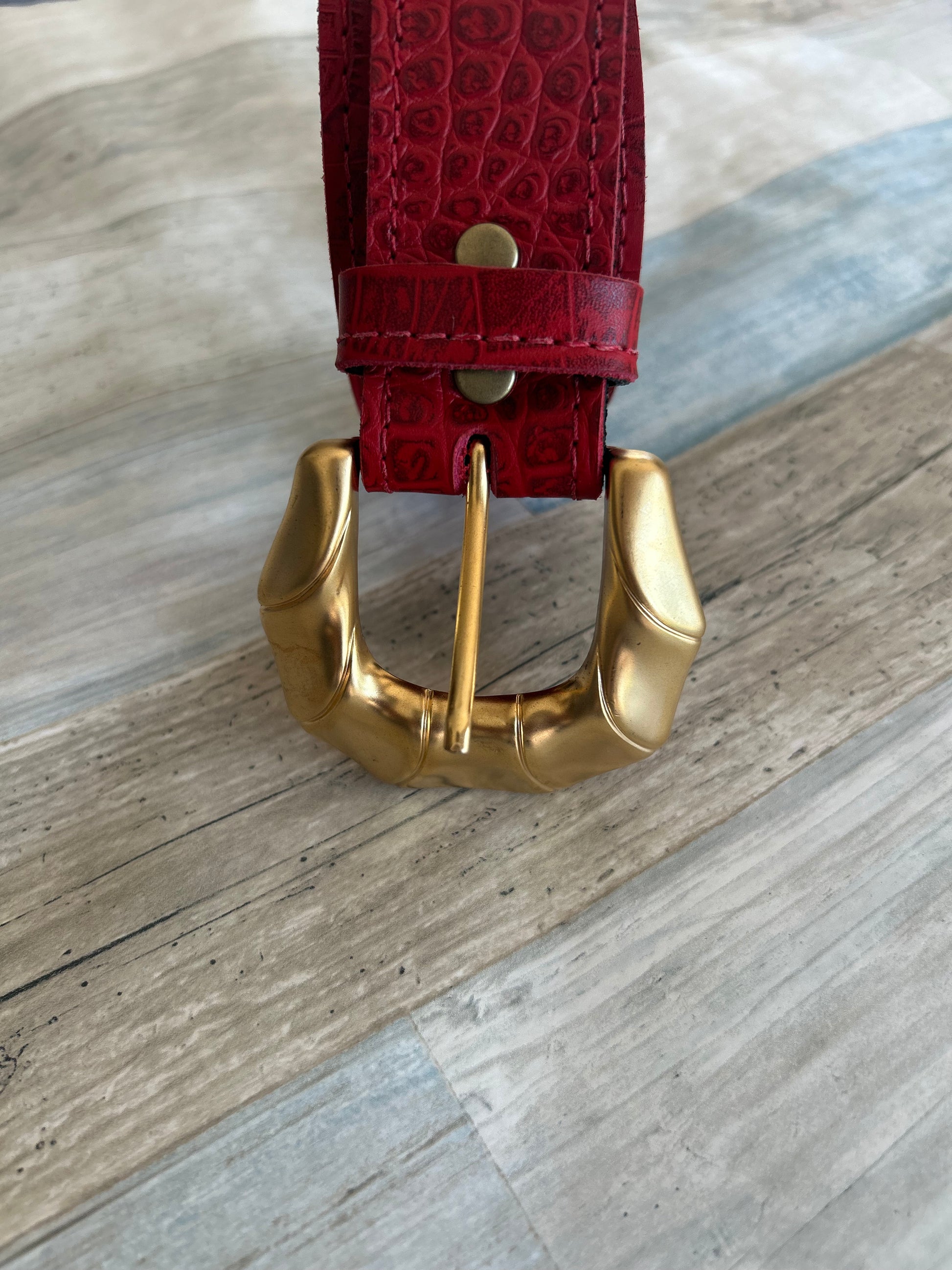 Cinturón 100% cuero con hebilla fija color oro mate