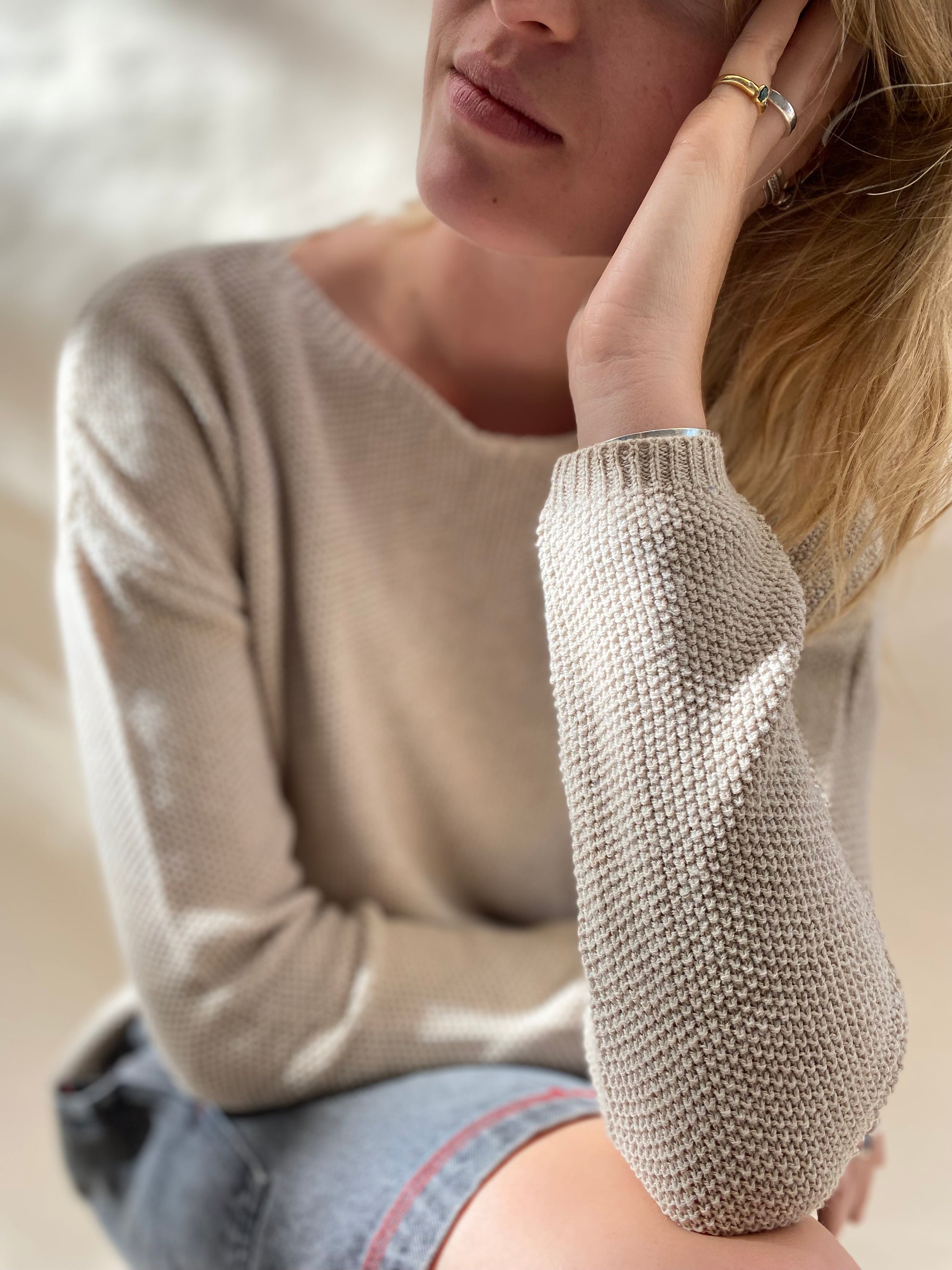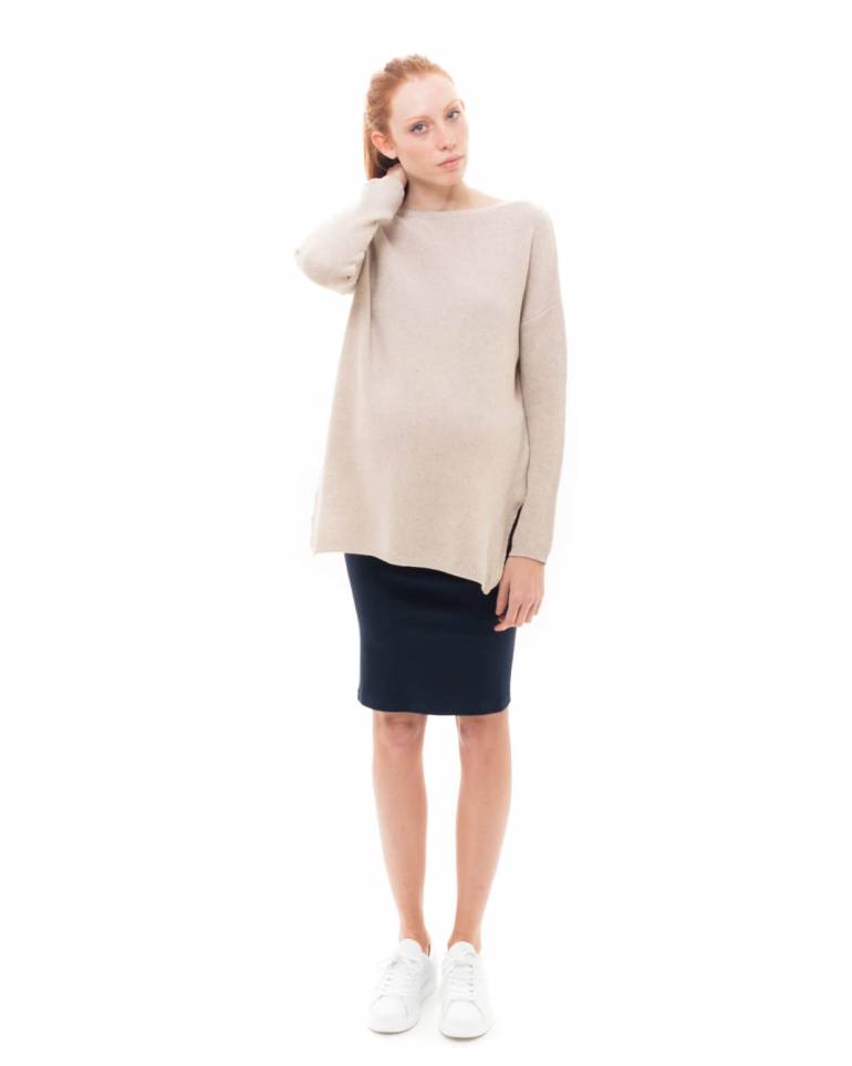 Jersey punto de algodón con mezcla de color melange, su diseño con escote pico en espalda