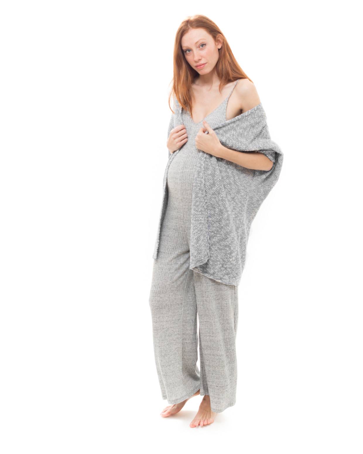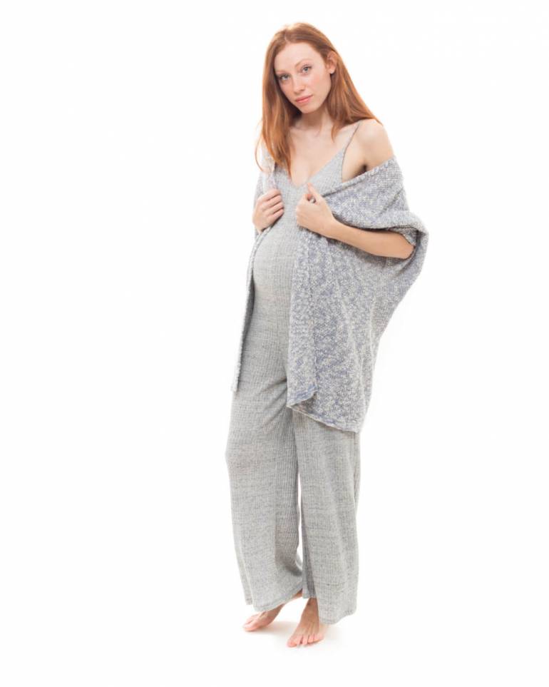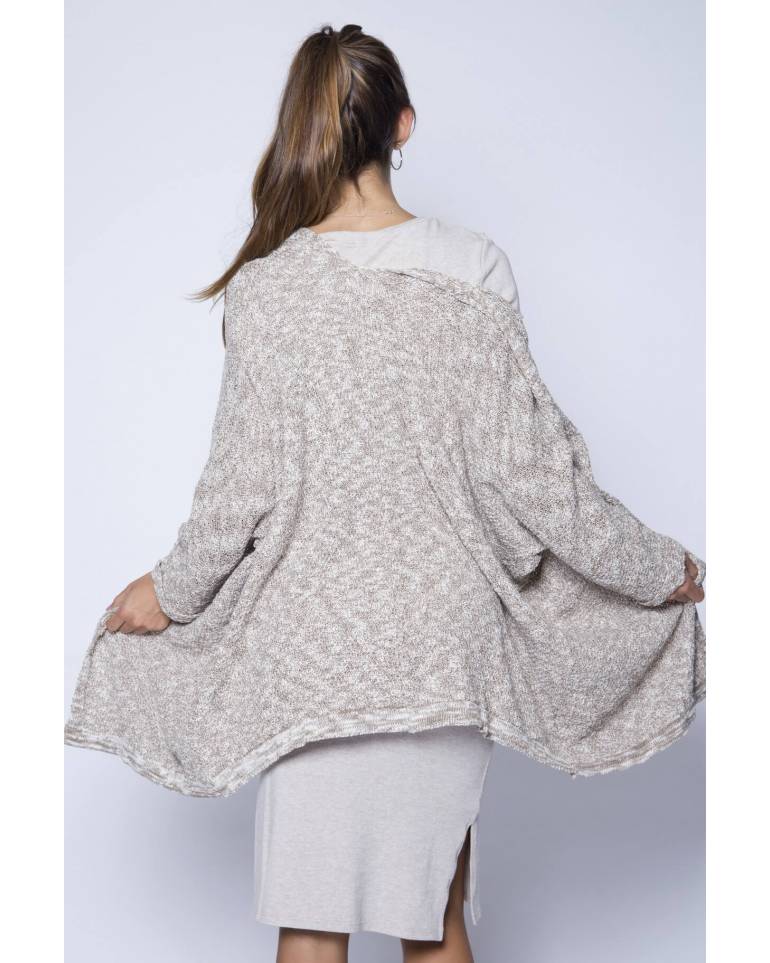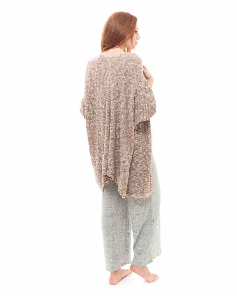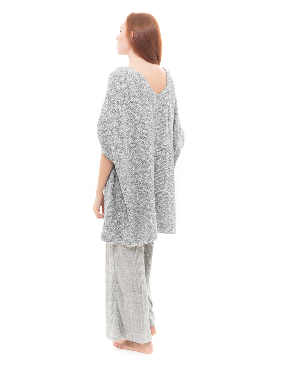 Tapado tipo kimono de punto de algodón con mezcla de color melange, su diseño con escote pico en espalda