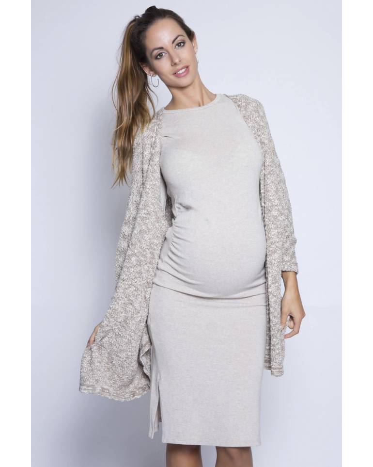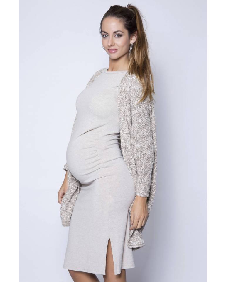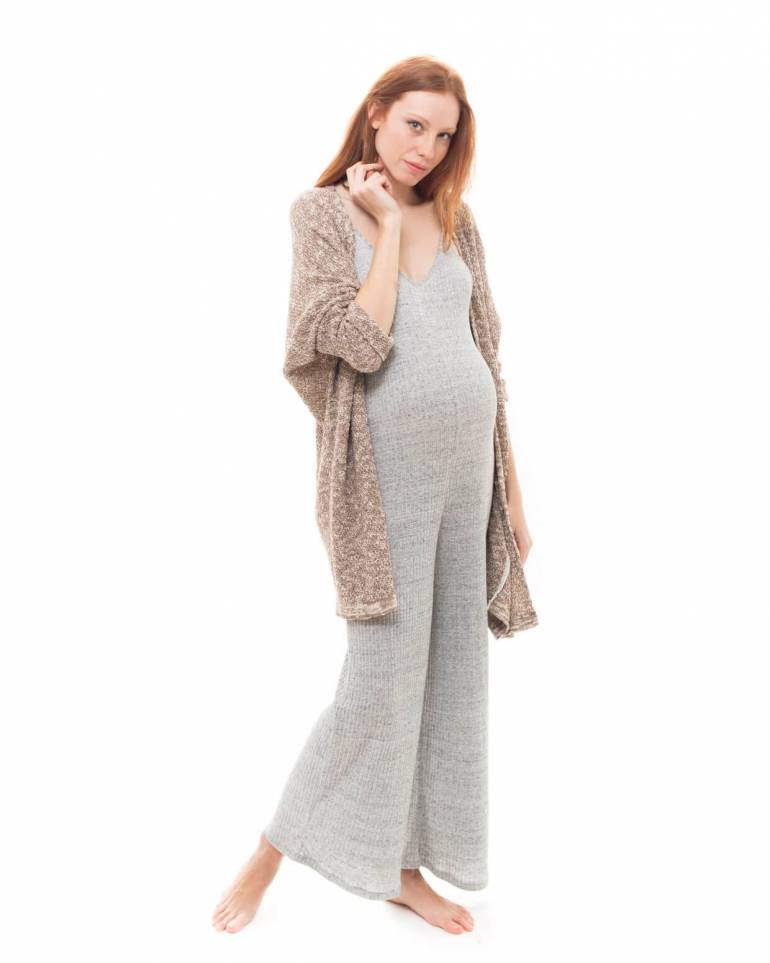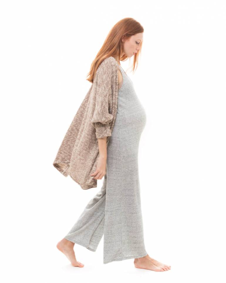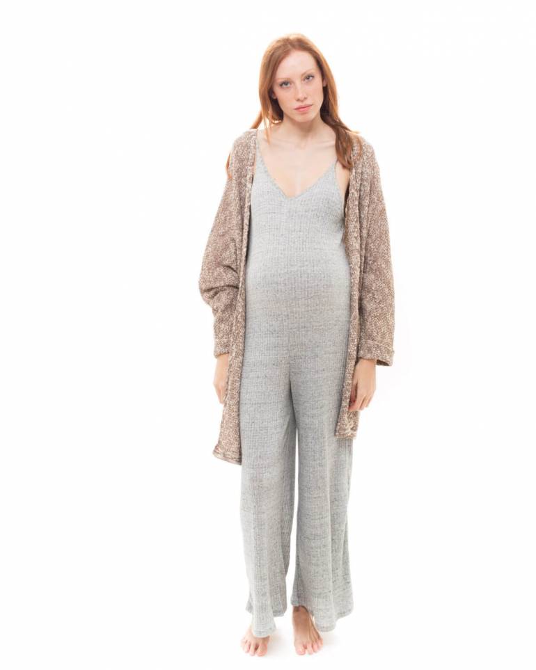 Tapado tipo kimono de punto de algodón con mezcla de color melange, su diseño con escote pico en espalda