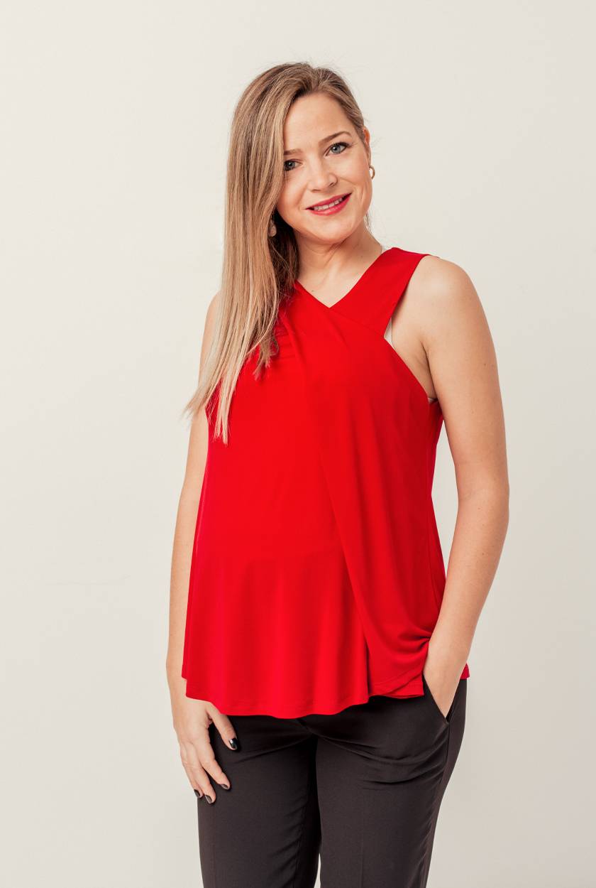 Top con escote asimétricos sin mangas, con doble capa cruzada en delantero,