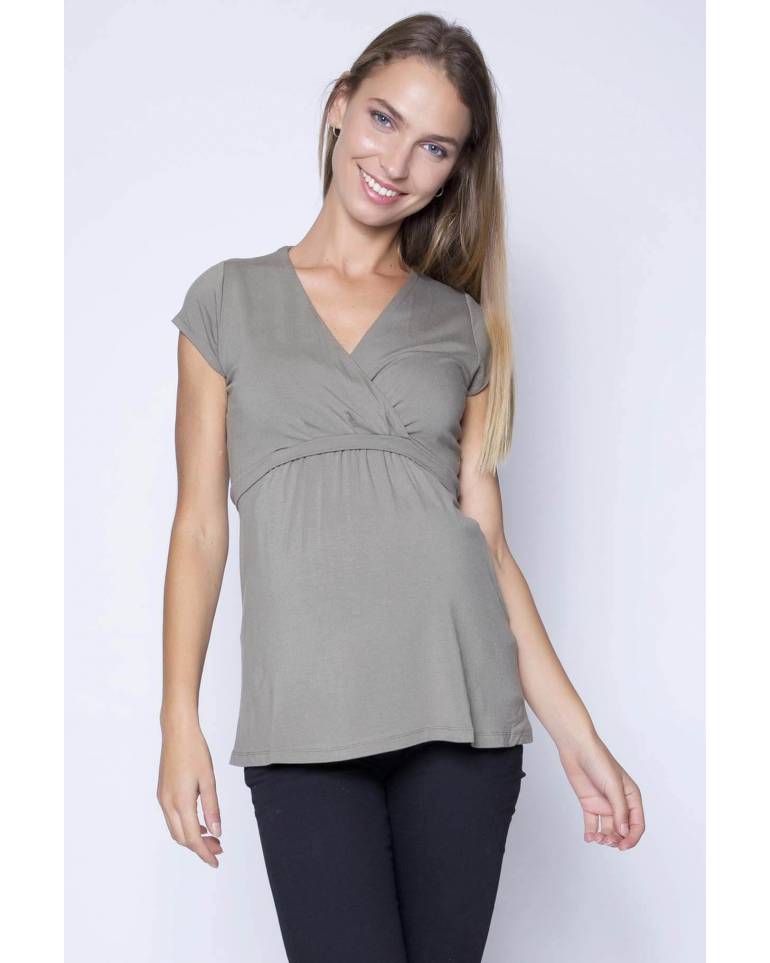 Camiseta Lactancia con escote cruzado y detalle bajo el busto, manga corta y cinta en la espalda para ajustar.